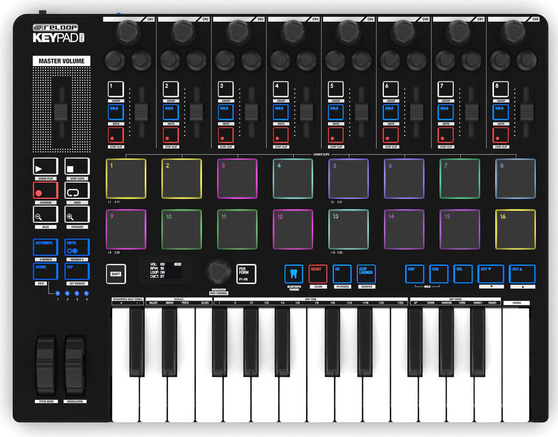 RELOOP KEYPAD PRO. Teclado controlador MIDI con 25 miniteclas, pads de batería, mezclador y controles...