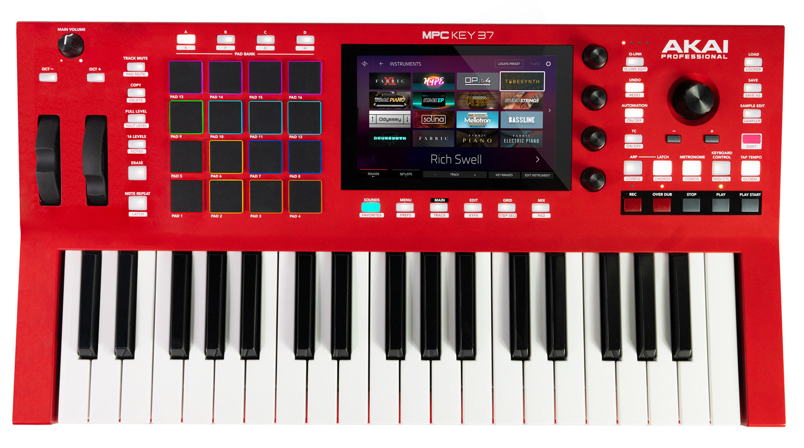 AKAI MPC KEY37. Teclado sintetizador y centro de producción autónomo con 37 teclas, 16 pads RGB y pantalla de 7 pulgadas.