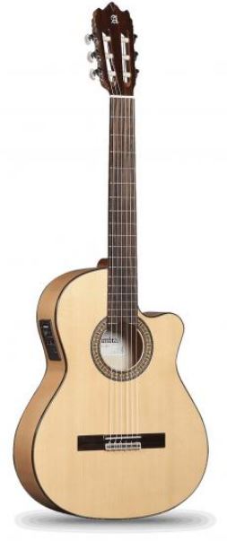 ALHAMBRA 3F CE1. Guitarra flamenca electrificada (Fishman Aero) con aro cortado (cutaway). Con tapa de abeto alemán, aros y fondo de sicómoro y diapasón de palosanto. Acabado: Brillo. Incluye funda.