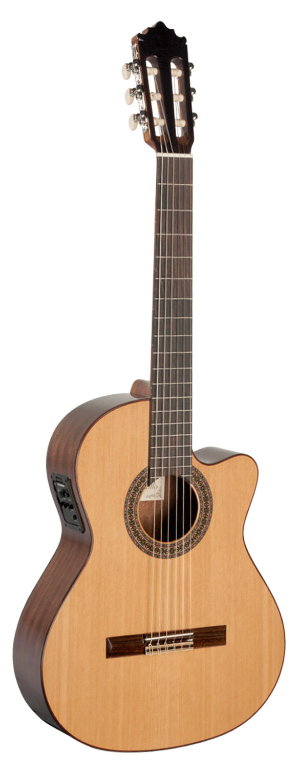 ARANJUEZ 222CE. Guitarra española electrificada con cutaway, tapa maciza de cedro y aros y fondo de sapelli. Color: Natural.