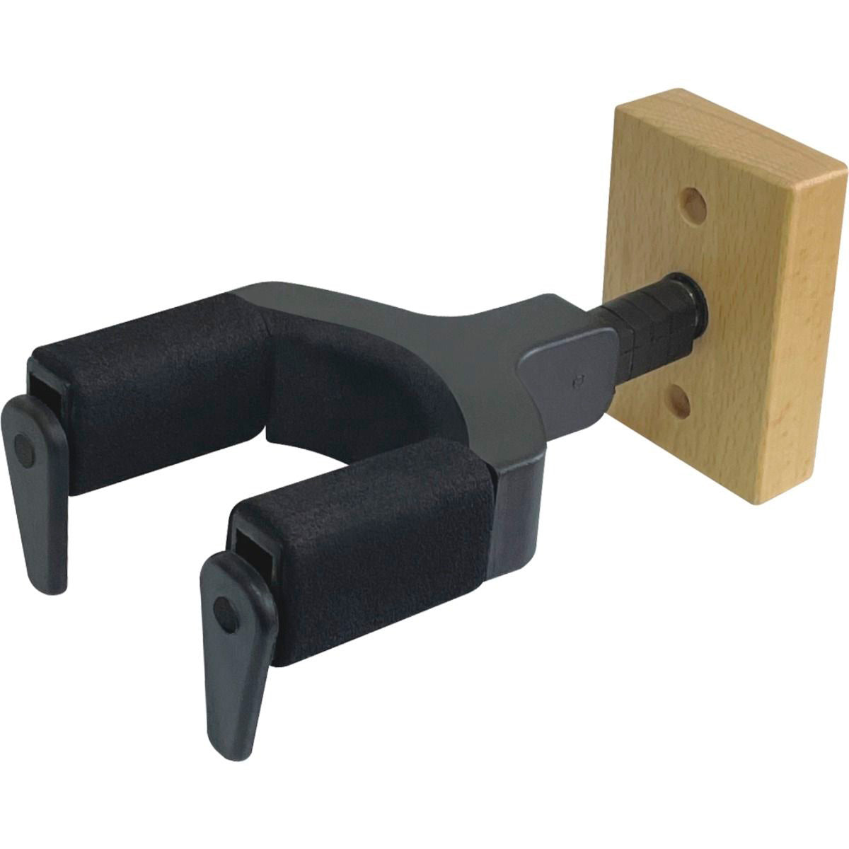 AUVISA GS031. Soporte de pared con base de madera y cierre automático para utilizar con guitarras y bajos.