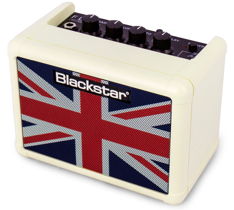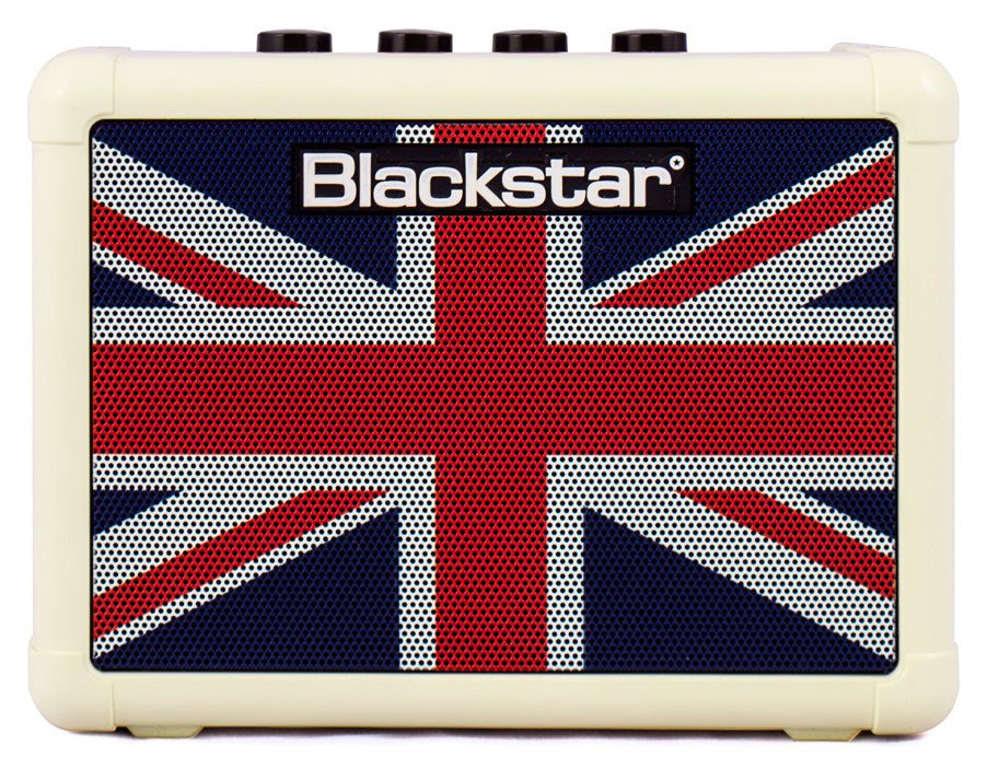 BLACKSTAR FLY3 UNION FLAG CR. Amplificador para guitarra portátil de 2 canales que incluye el sistema ISF y delay de cinta. Se puede utilizar también para reproducir música desde un móvil o una tablet. Acabado de color crema con la bandera Union Jack en el frontal.