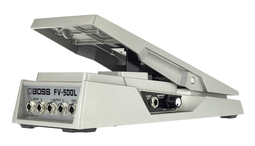 BOSS FV500L. Pedal de volumen estéreo de baja impedancia con función de pedal de expresión y un movimento muy suave.