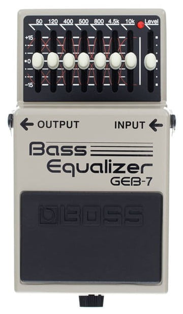 BOSS GEB7. Efecto ecualizador para bajo de 7 bandas. La útil gama de frecuencias del GEB7 va desde los 50Hz hasta los 10kHz, pudiendo acomodarse a cualquier tipo de bajo, incluidos los de 5 cuerdas. Sus 7 bandas de frecuencia proporcionan control sobre la gama de medios y cada banda puede reforzarse o recortarse en una extensión de +/- 15Db.