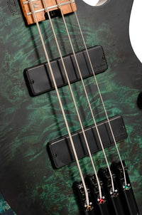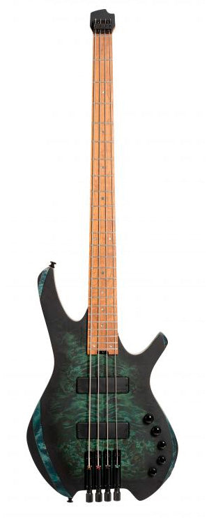 CORT SPACE 4 SDG. Bajo eléctrico de cuatro cuerdas de la serie Space headless, sin pala, con cuerpo de arce con tapa de nudos de álamo. Color: Star dust green. Incluye funda.