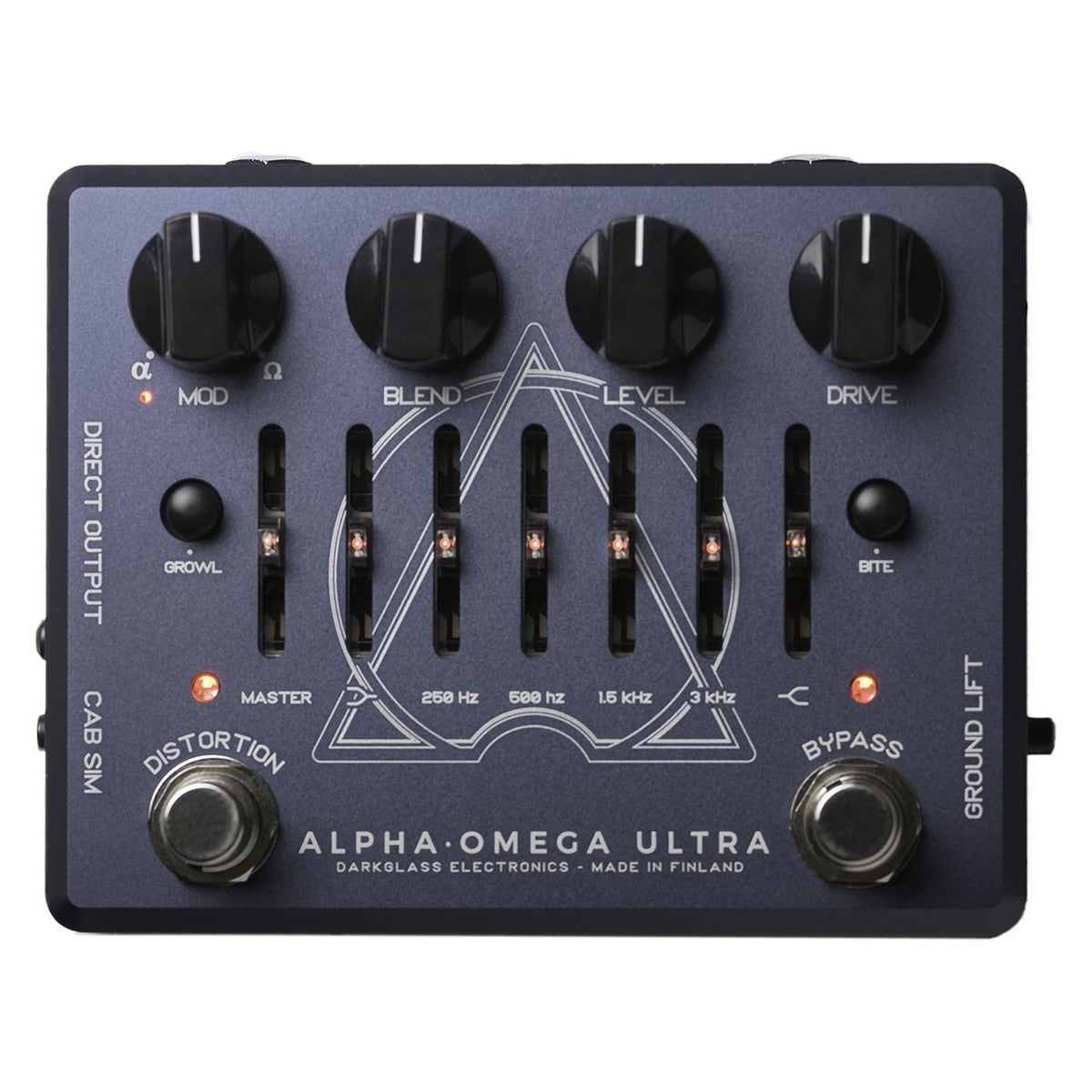 DARKGLASS ALPHA OMEGA ULTRA. Pedal preamplificador para bajo con dos motores de distorsión, Alpha y Omega, un gran rango de dinámica y ecualización activa gráfica de 6 bandas.