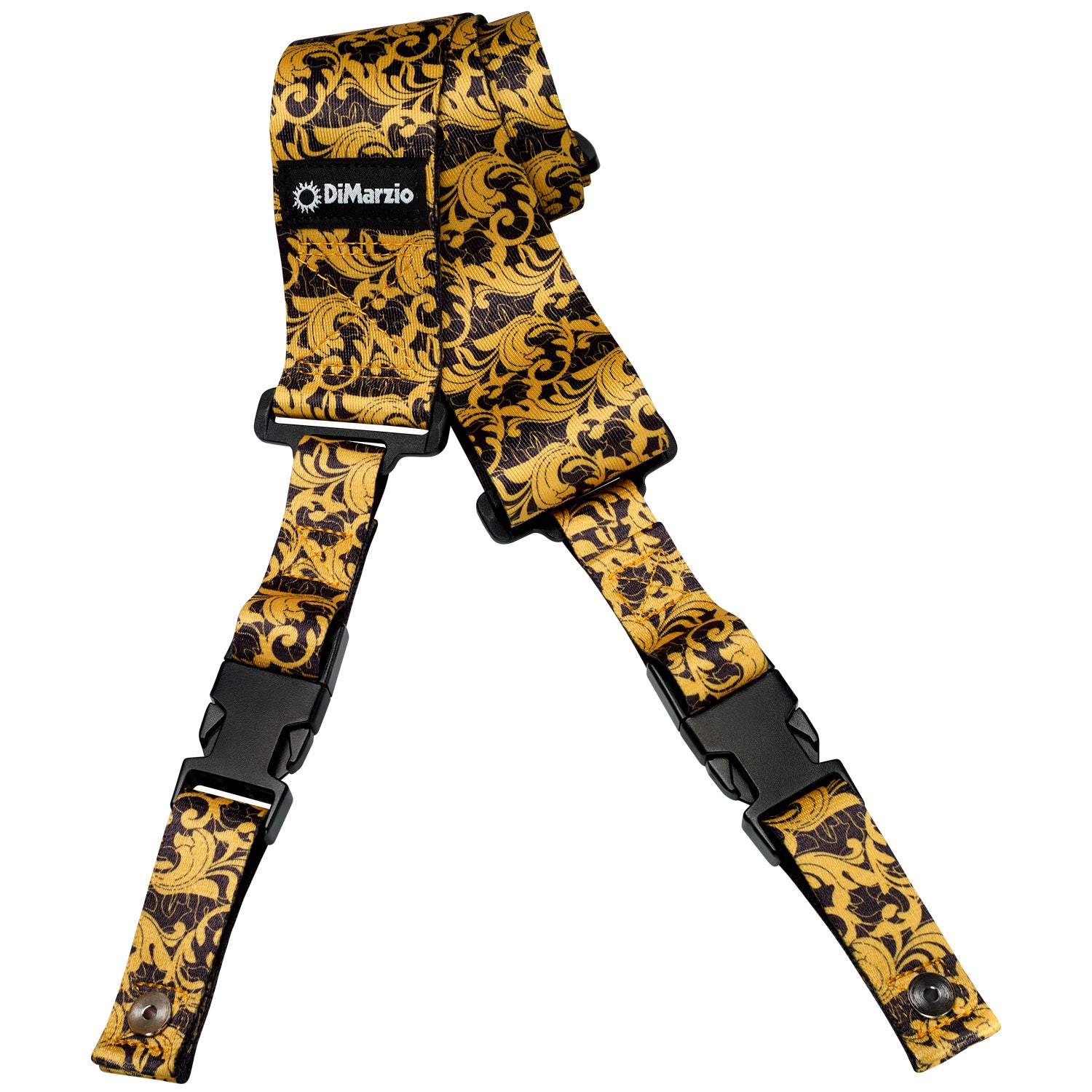 DIMARZIO DD2250. Correa para guitarra diseñada para ir junto a la guitarra Ibanez PIA, modelo signature del guitarrista Steve Vai, con el sistema ClipLock Quick Release en acabado negro y dorado.