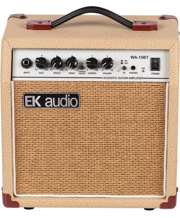 EK AUDIO WA15BT. Amplificador combo para guitarra acústica con una potencia de 15W, altavoz de 6.5 pulgadas, efecto chorus y bluetooth.