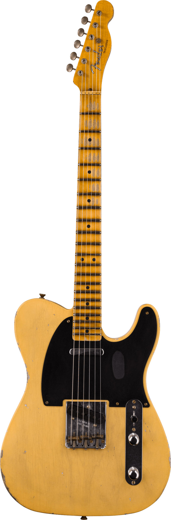 FENDER 52 TELECASTER RELIC MN AG NBL. Guitarra eléctrica de la serie Fender Custom Shop con cuerpo tipo Telecaster de dos piezas de fresno seleccionado en acabado aged nocaster blonde. 923 5001 557. Incluye estuche.