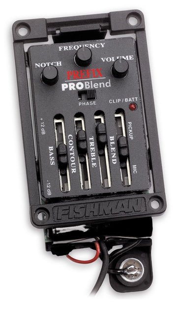 FISHMAN PREFIX PRO BLEND 2.3MM. Preamplificador miniatura con compartimento para batería ideal para guitarras de cuerpo pequeño. Controles de volumen, graves, agudos y medios semi-paramétricos. Incluye pastilla de 2.3 mm para instalar bajo el puente.