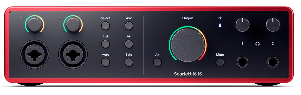 - 16 entradas y 16 salidas, dos preamplificadores de micrófono y MIDI In/Out, para instrumentos y de línea. Completamente equipada para proyectos de estudio demandantes, con entradas y salidas SPDIF y ADAT