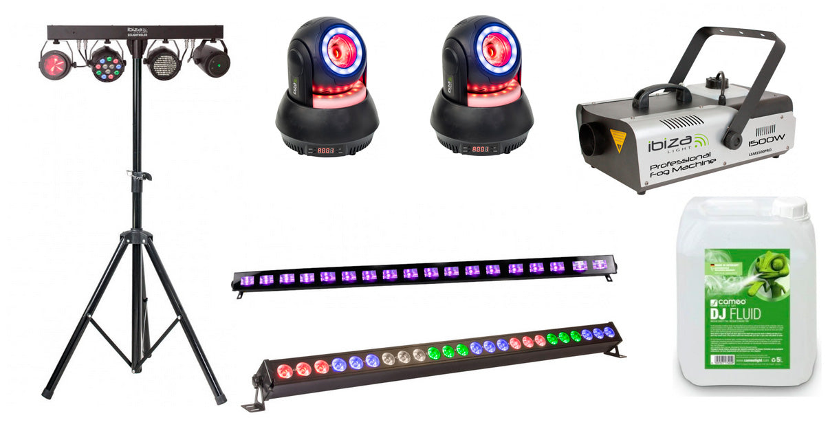 IBIZA LIGHT -PACK- PARTY PRO SET ILUMINACION + CABEZA MOVIL Y MAQUINA DE HUMO