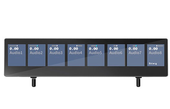 ICON D4. Conjunto de ocho pantallas para la expansión Icon P1-X con visualización clara de nombres de canales y valores de control, entre otros parámetros.