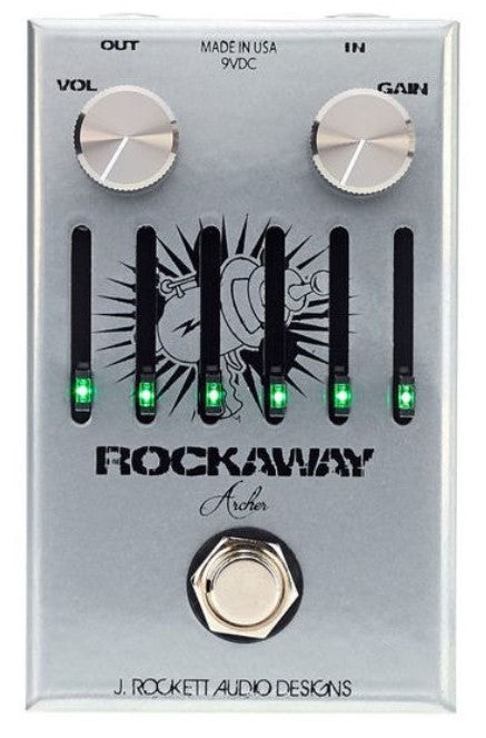 J. ROCKETT ROCKAWAY ARCHER. Pedal de overdrive signature Steve Stevens con controles de volumen, ganancia y ecualización gráfica de seis bandas para tener una amplia variedad de sonidos.