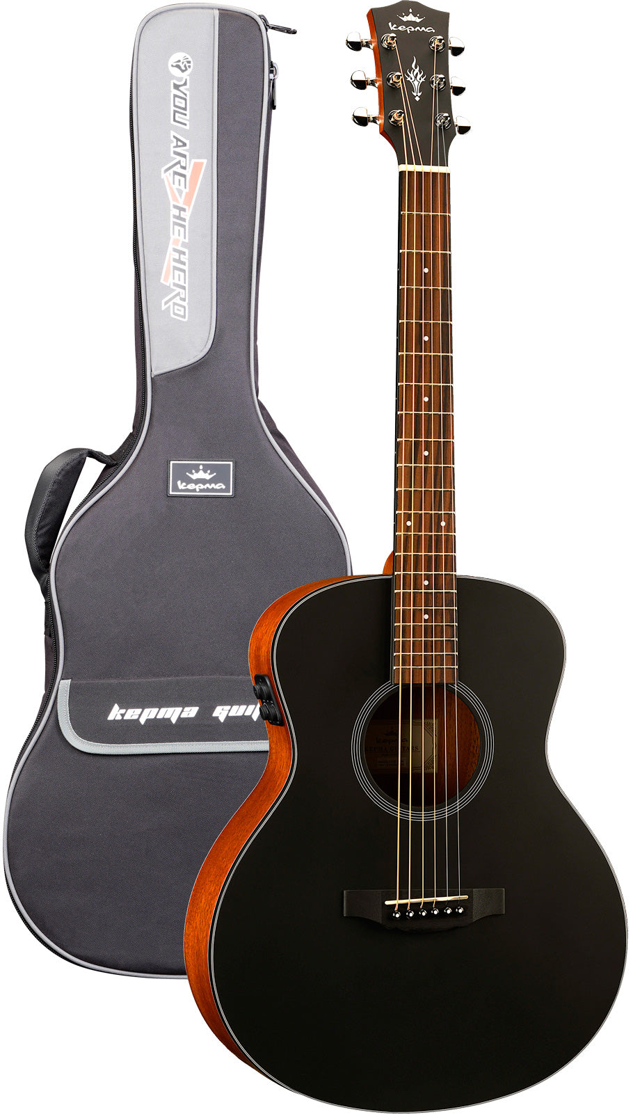 KEPMA ES36E K10 BK. Guitarra electro-acústica de la serie Travel con cuerpo de 3/4 tipo mini orquesta, tapa de abeto Sitka/Engelman, aros y fondo de caoba y previo AcoustiFex K10 con efectos que se puede utilizar sin conectar a un amplificador. Color: Negro. Incluye funda.
