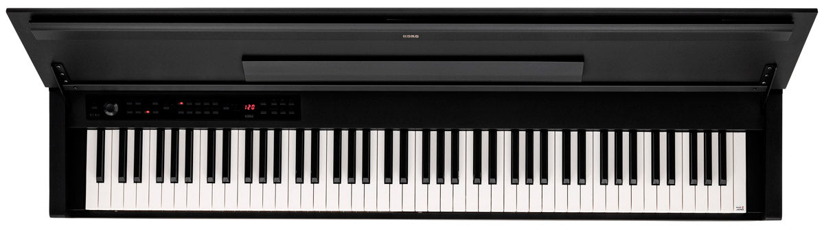KORG E1 AIR BK. Piano digital de 88 teclas con teclado contrapesado RH3, 30 sonidos reproducción de audio vía Bluetooth y un nuevo sistema de potencia EvoTone para tener un sonido y dinámico con claridad y muchos matices. Color: Negro mate. Fabricado en Japón.