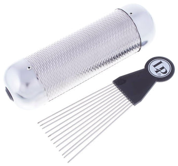 LATIN PERCUSSION LP 452. Güiro de metal y shaker “todo-en-uno” patentado, compacto, con superficie doble de acero inoxidable.