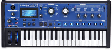 Novation MiniNova. Sintetizador portátil y compacto que incluye características nunca antes vistas como los controles Animate mediante botones con acción de pulsación y el nuevo efecto para voces de Novation: VocalTune. Con cerca de 15 años de legado y decadas de experiencia en diseño, MiniNova se ha construido alrededor del mismo motor sintetizador que Ultranova, el buque insignia de Novation. Ofrece tres osciladores versátiles, hasta cinco efectos, dos filtros, seis envolventes, tres LFOs y 36 tablas de ondas diferentes. Es capaz de crear un amplio rango de sonidos rompedores, adaptables a cualquier género.