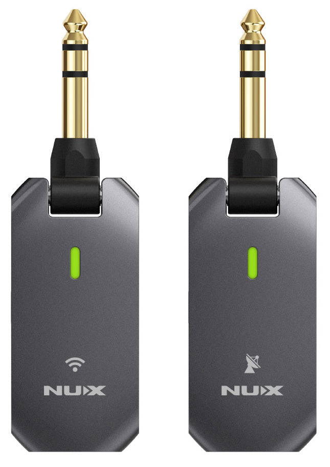 NUX C5RC. Sistema inalámbrico para guitarra con un rango de frecuencia de 5.8 GHz que funciona tanto con guitarras y bajos eléctricos activos o pasivos y guitarras electro-acústicas con piezo o pastilla magnética.