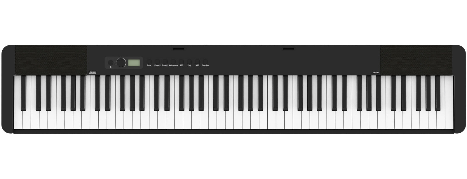 OQAN QP100. Piano digital portátil con teclado contrapesado de 88 teclas, 169 sonidos y batería recargable. Color: Negro. Incluye pedal de sustain y funda.