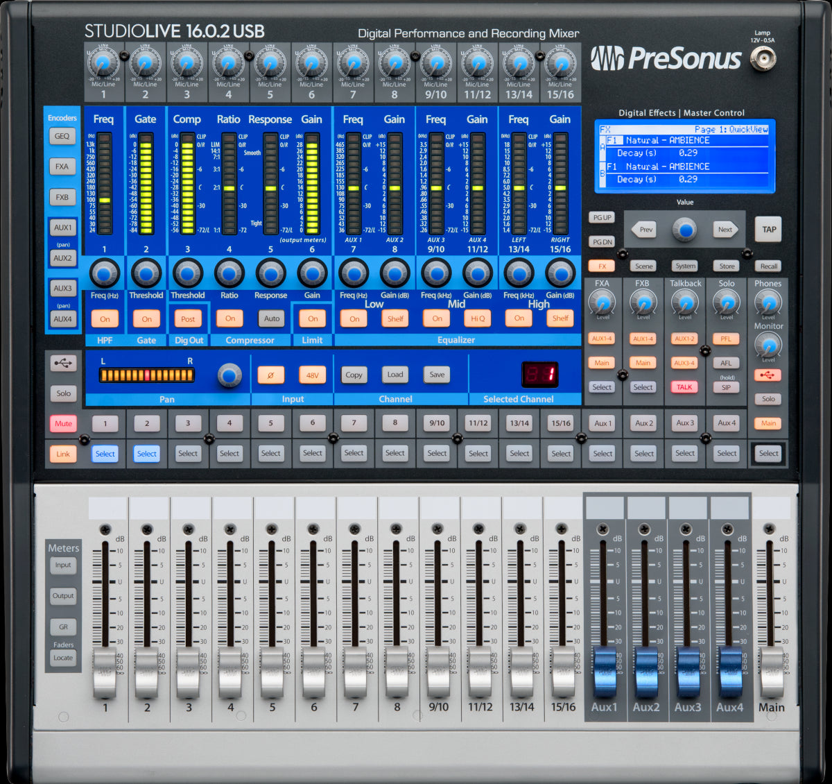 PRESONUS STUDIOLIVE CLASSIC 16.0.2 USB. Mesa de mezclas de la serie Studio Live Classic de 16 canales y previos de micrófono con entradas y salidas analógicas.