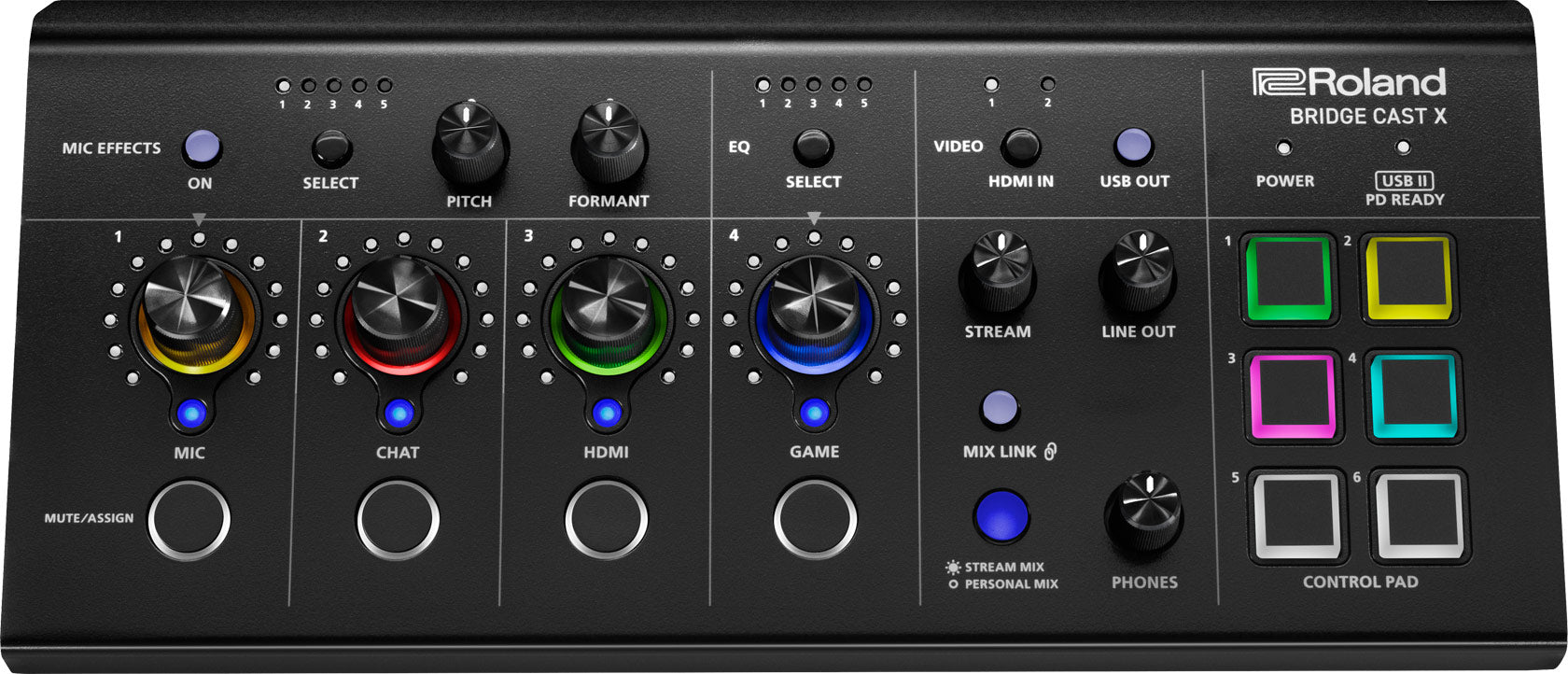 ROLAND BRIDGE CAST X. Interfaz de streaming AV profesional pensada para gamers, podcasters o YouTubers con funciones de doble mezcla de sonido, compatibilidad con micrófonos XLR de estudio, procesamiento de voces y efectos de sonido.