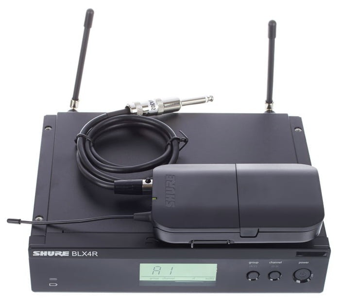 SHURE BLX 14RE. Sistema inalámbrico de petaca de la serie Guitar SM con hasta 12 frecuencias compatibles. Set compuesto por receptor enracable BLX4R, emisor de petaca BLX1 y cable WA302.