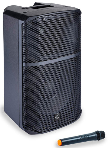 SOUNDSATION PROVIBE 10 AIR. Sistema de PA portátil de dos vías con woofer de 10 pulgadas, tweeter de 1", micrófono de mano inalámbrico VHF, potencia máxima de 360W y batería recargable.