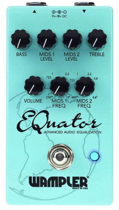 WAMPLER EQUATOR. Pedal de ecualización con controles fijos de bajos y agudos y dos controles de medios semiparamétricos para guitarra o bajo.