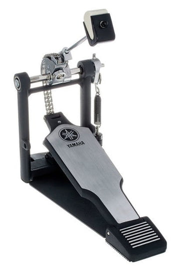 YAMAHA FP9500C. Pedal individual con transmisión de cadena convertible a transmisión de correa. Este diseño original de Yamaha incorpora una estructura secundaria justo debajo de la varilla de balancín, ofreciendo mayor estabilidad y durabilidad. Los baterías experimentarán un movimiento más estable, particularmente si usan doble pedal, ya que la estructura secundaria incluye cojinetes para los golpeadores principales y los distantes.